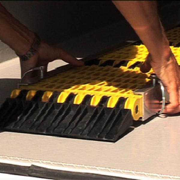 Multifunktionelle glasfaserverstärkte Klapprampe, verträgt auch diagonales Überfahren in Gräben. Als Ausgleichskeil schnell auf verschiedene Höhen eingestellt: Ausgleich kann mit max. 2 Unikos bis über 200 mm (in Schritten zu ca. 40mm) erfolgen. Durch Keilform vorne und hinten gut zu Befahren, sehr griffige Oberfläche. Ein unentbehrlicher Helfer für Jedermann und jeden Zweck, ob Wohnmobil, Camping, Fahrzeugreparaturen oder den Wüsteneinsatz mit dem 4x4 Offroader. Dank der Aluminium Schienen verwandeln sich die Sandbleche in Windeseile in eine feste Auffahrrampen, um z. B. Motorroller oder Quads auf einen Anhänger oder in die Heckgarage Ihres Campers zu fahren. Die beiden Schienen werden einfach rechts und links auf die Uniko 6in1 aufgesetzt und mit Splinten fixiert. Somit bekommt die Uniko Faltrampe eine 7te Nutzungsmöglichkeit. Die Schienen sind in der Kombination mit den Unikos bei paarweiser, gleichmäßiger Nutzung bis zu 400 kg belastbar.